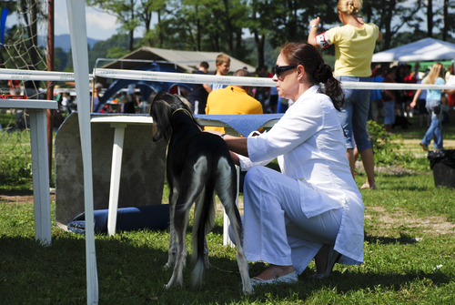 Grade: excellent, 1. range. Description: good size, good bones, good head, excellent pigmentation, perfect teeth, correct bite, good placed and worn ears. Long enough and strong neck, correct top and bottom line, standing front and back parallel with correct angulation. Excellent movement.