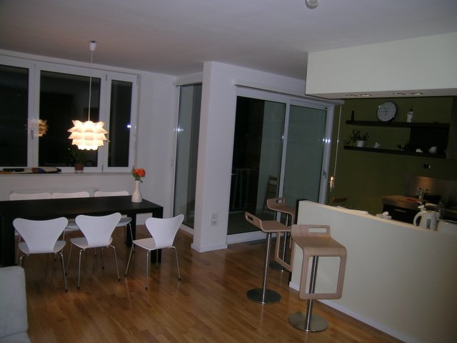 Part of the kitchen can also be seen. Living room not equipped yet.